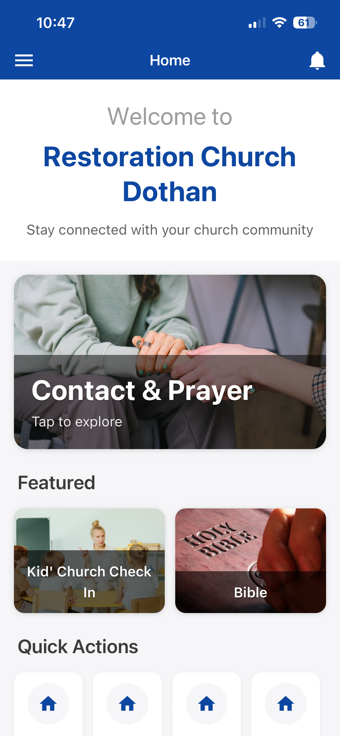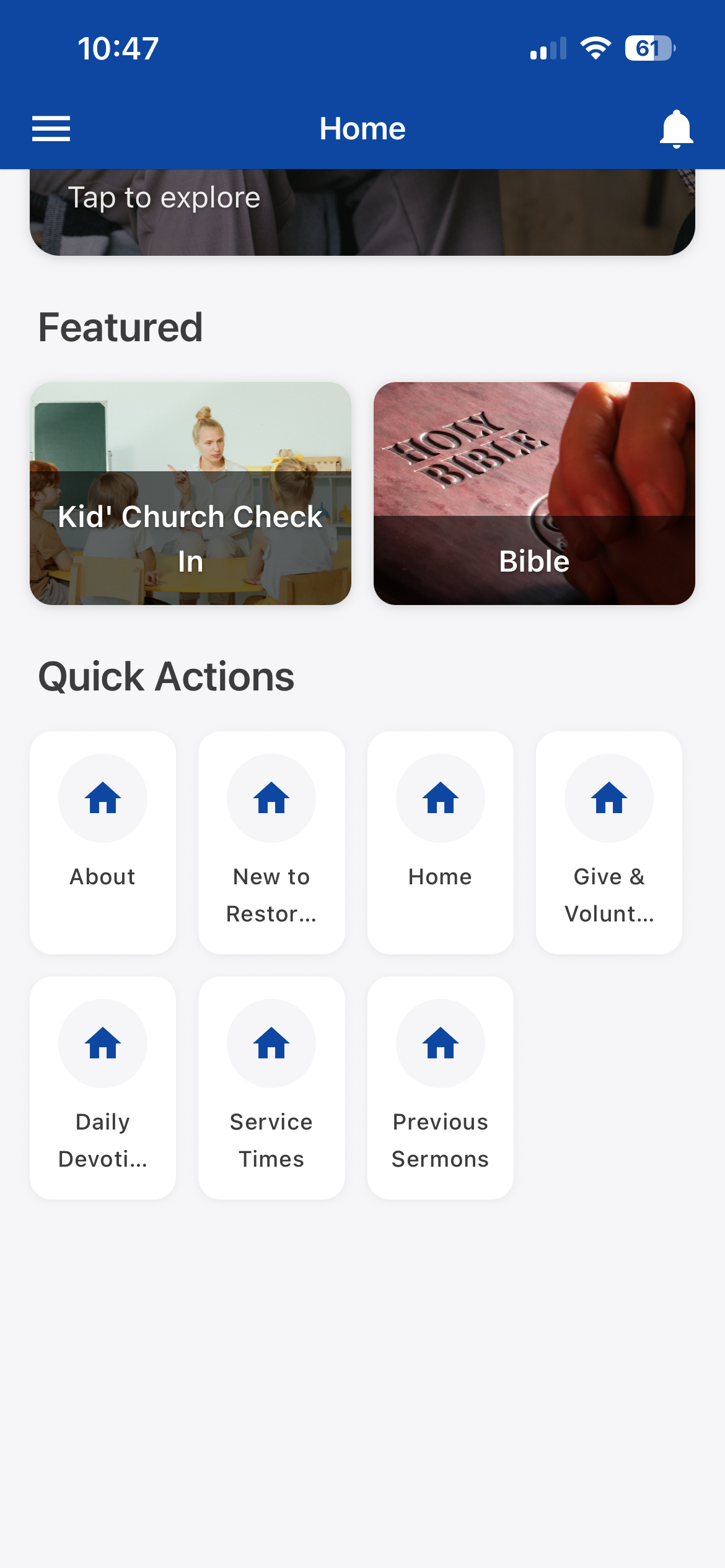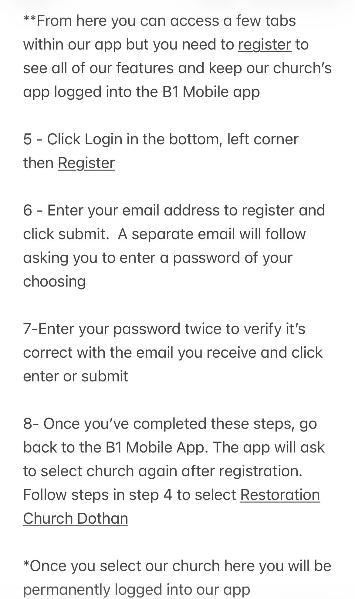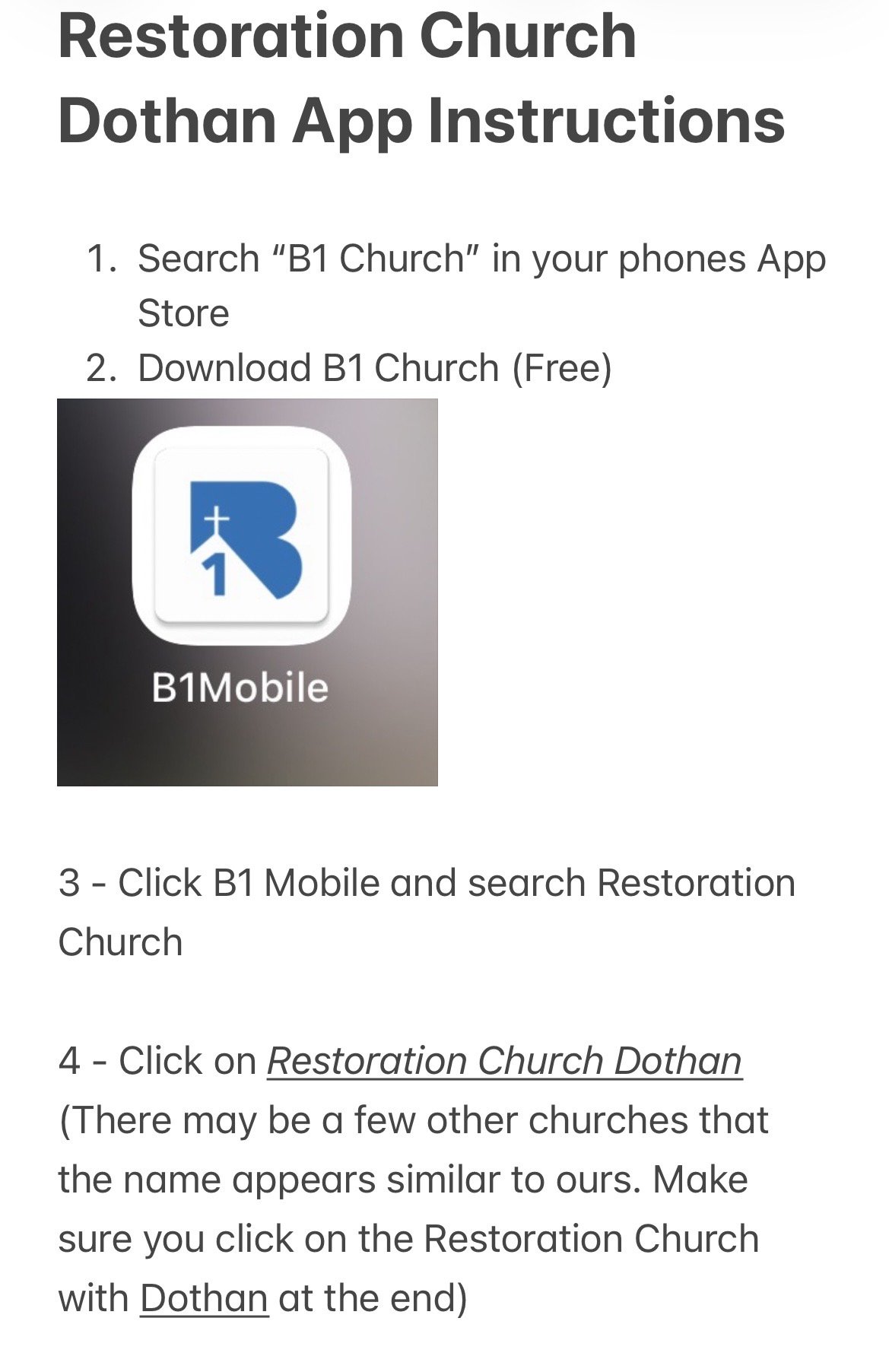 Introducing our first mobile app at Restoration Church! We want to encourage you to join us here on our free app! For now, most app tabs are links to webpages here on this website. However, we currently have some features enabled that are native to the app only such as the Biblia Bible application and a new verse of the day that changes each morning! We expect to enable many more exciting features soon!